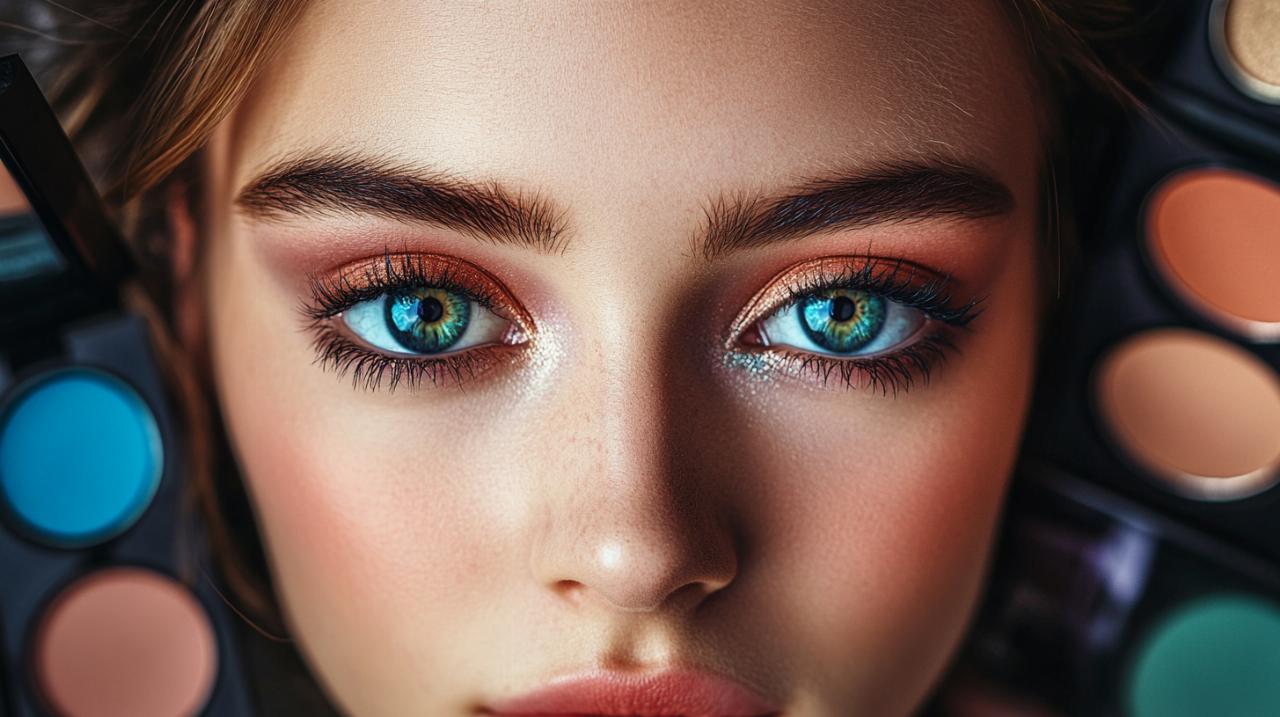 Pour un effet sophistiqué, les fards irisés ou pailletés s'avèrent particulièrement flatteurs sur les yeux bleus, notamment lors d'occasions festives. L'application d'un eye-liner brun plutôt que noir adoucit le regard tout en définissant parfaitement la ligne des cils. Cette approche évite de durcir les traits et préserve la douceur naturelle des yeux clairs. Le mascara noir ou brun appliqué sur les cils supérieurs et inférieurs achève de définir le regard avec élégance.
